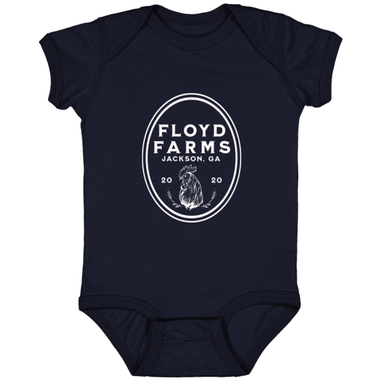 Floyd Farms of GA infant's jersey onesie with logo in white
