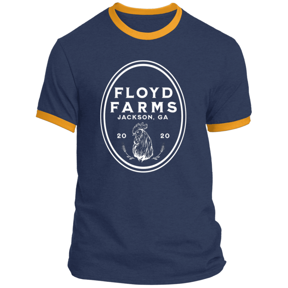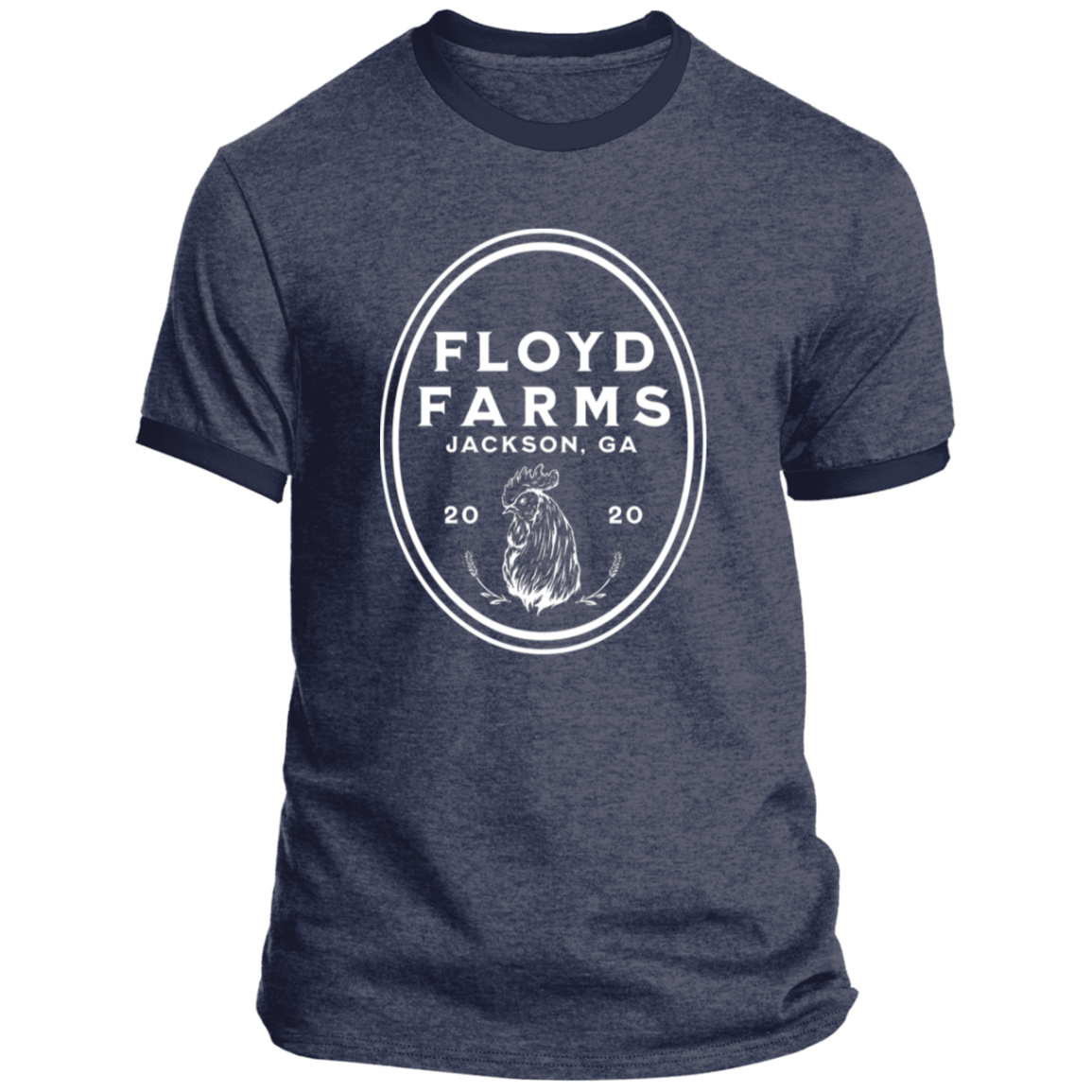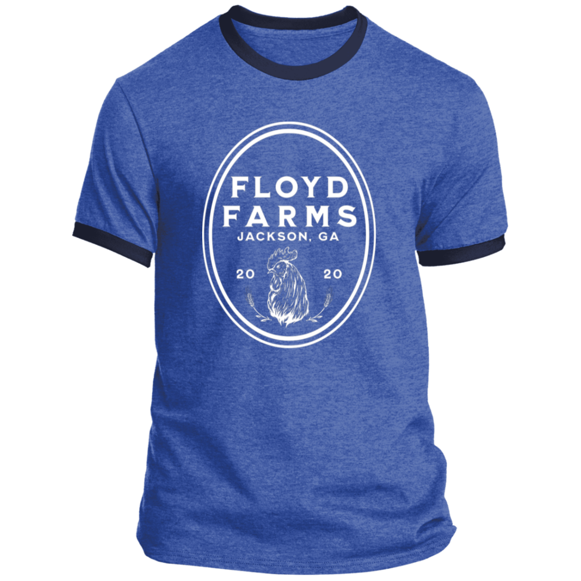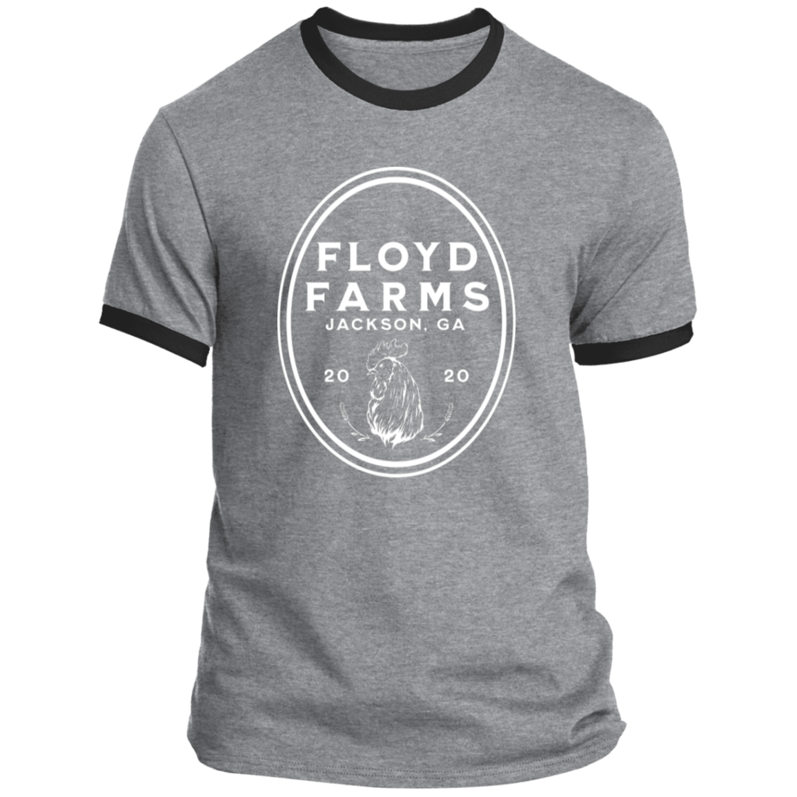 Floyd Farms of GA unisex ringer tee with logo in white